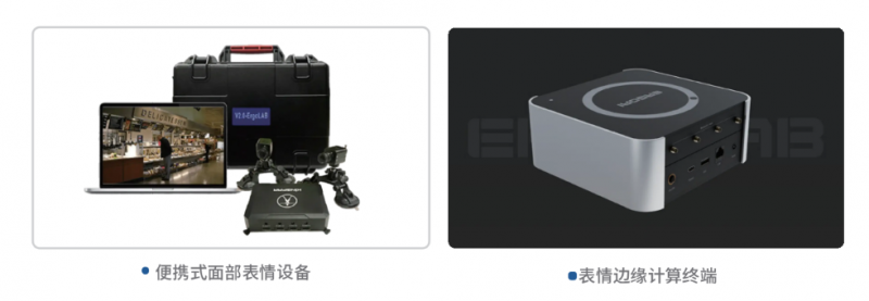 表情边缘计算终端 | 搭载边缘计算终端和智能算法模型,结合机器学习算法与图像识别技术,利用面部肌肉特征点计算和分类表情状态,自动编码多种基本表情、精确计算情感效价,系统可实时检测被试的头部位置、面部特征点、视线朝向、基本生物信息等,结合AI状态识别进一步实现对操作人员的分心、疲劳、应激等状态的自动识别以及特定环境条件下的预警反馈。 |