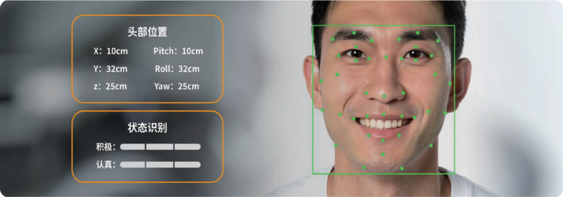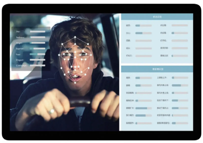l 情绪状态识别:搭载边缘计算终端,实时计算高兴、生气、悲伤、厌恶、蔑视等数十种情绪状态,以及疲劳、应激等情感反应