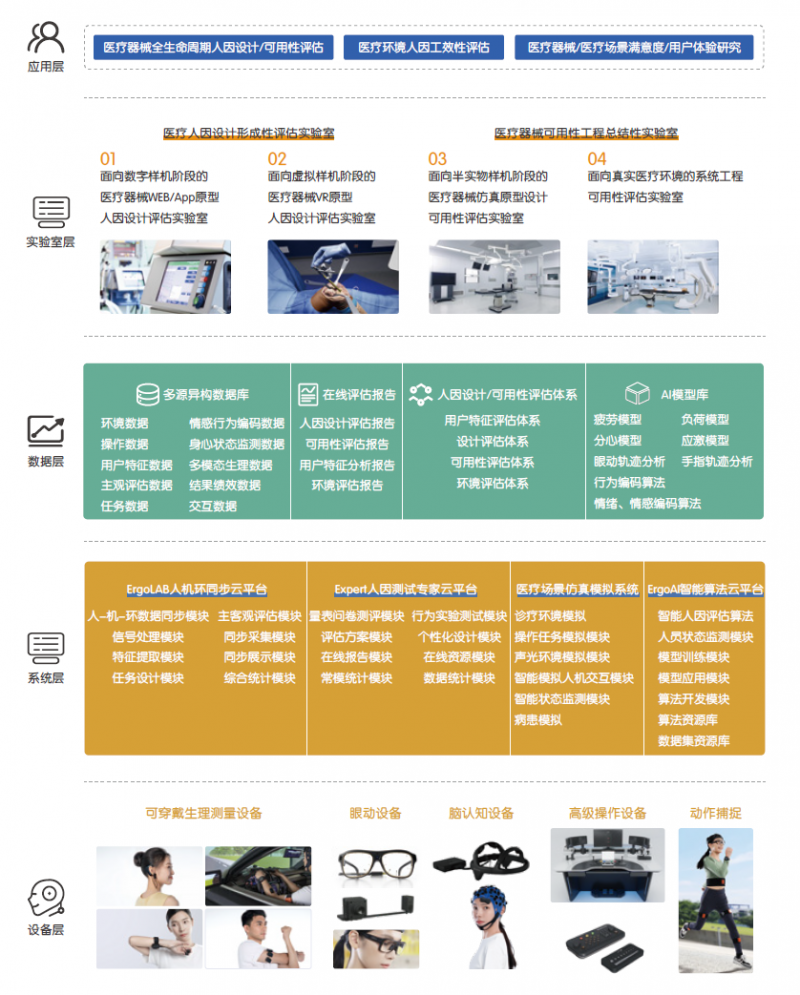 n 软件平台:医疗器械可用性测试多模态数据同步平台,ErgoExpert医疗人因测试专家系统、ErgoAI人因智能评估与边缘计算平台。